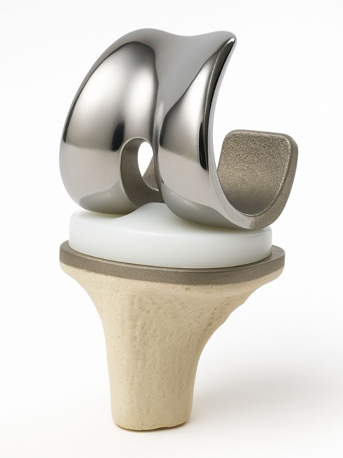 - Titanio: leggero, biocompatibile e capace di integrarsi bene con l’osso. È spesso usato per la componente tibiale, quella che poggia sulla gamba. Grazie alla sua porosità, favorisce l’osteointegrazione, cioè la crescita naturale dell’osso intorno alla protesi.